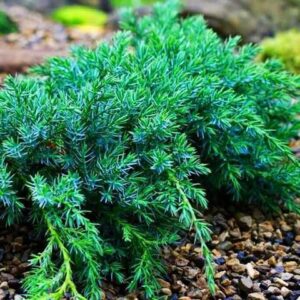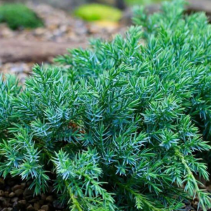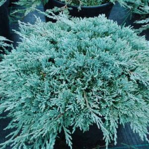Ялівець горизонтальний ‘Blue Chip’ Сланкий чагарник, щільний, з гнучкими піднятими вгору гілками, з хвоєю сріблясто-блакитного кольору (взимку – з ліловим відтінком). Досягає близько 30 см заввишки і близько 2 м в діаметрі. Добре росте на сонячних місцях. Рекомендується для альпінаріїв,кам’яні стінки і на відкоси, для посадок в контейнерах, а також