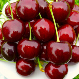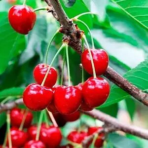 - Плоди: Дуже великі (10-15 г), темно-червоні, блискучі, серцеподібної форми.