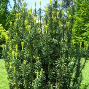 Тис середній ‘Хіллі’ Одна з недооцінених декоративних рослин в наших умовах – тис може бути чудовим солітером і прикрасить ваш сад чи ділянку, або утворить прекрасний живопліт. Тис Хіллі один з найулюбленіших у ландшафтних дизайнерів. Компактний щільний вічнозелений кущ, що повільно росте досягаючи 2-2,5м заввишки та 1-1,2м в ширину. Хвоя